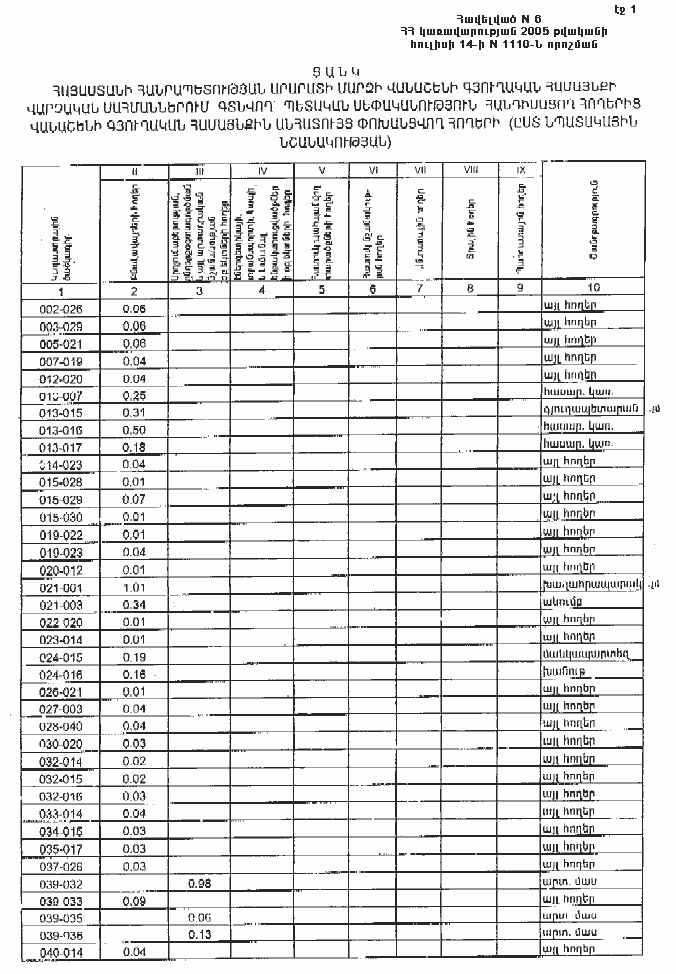 6. Թույլատրել Հայաստանի Հանրապետության կառավարությանն առընթեր անշարժ գույքի կադաստրի պետական կոմիտեի նախագահին Հայաստանի Հանրապետության պետական գեոդեզիական ցանցի հավասարակշռման արդյունքների հիման վրա Հայաստանի Հանրապետության վարչատարածքային միավորների սահմանանիշերի կոորդինատների ժողովածուի հրատարակումից հետո հողային ֆոնդի ընթացիկ հաշվառման ժամանակ Հայաստանի Հանրապետության Արարատի մարզի Վանաշենի գյուղական համայնքի հողային հաշվեկշռում սահմանված կարգով կատարել համապատասխան փոփոխություններ:
