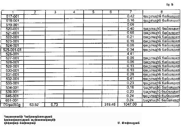 Մ. Թոփուզյան Հավելված N 5