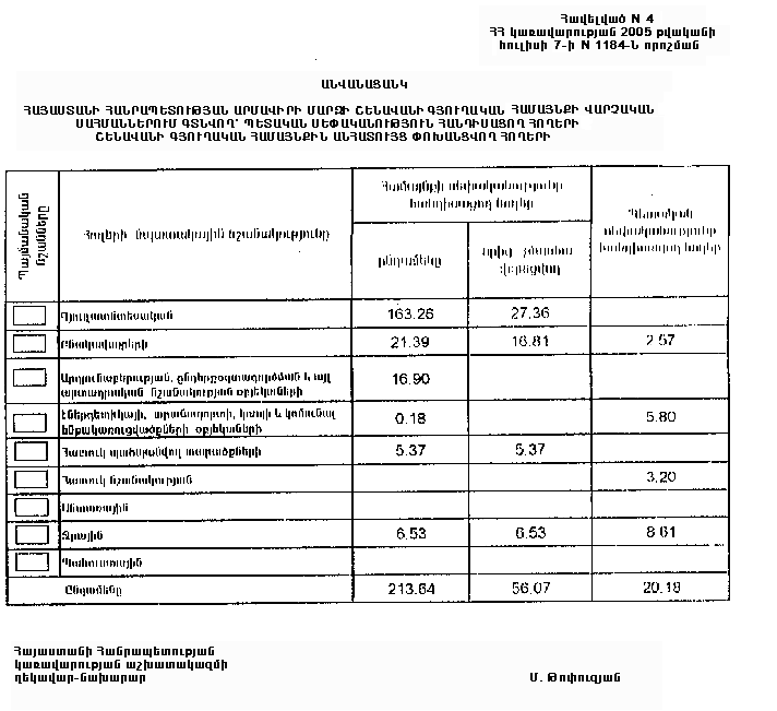 4. Ընդունել ի գիտություն Հայաստանի Հանրապետության Արմավիրի մարզի Շենավանի գյուղական համայնքի հողային ֆոնդի առկայության և բաշխման մասին հաշվետվությունը՝ 2005 թվականի հունվարի 1-ի դրությամբ՝ համաձայն NN 8 և 9 հավելվածների: