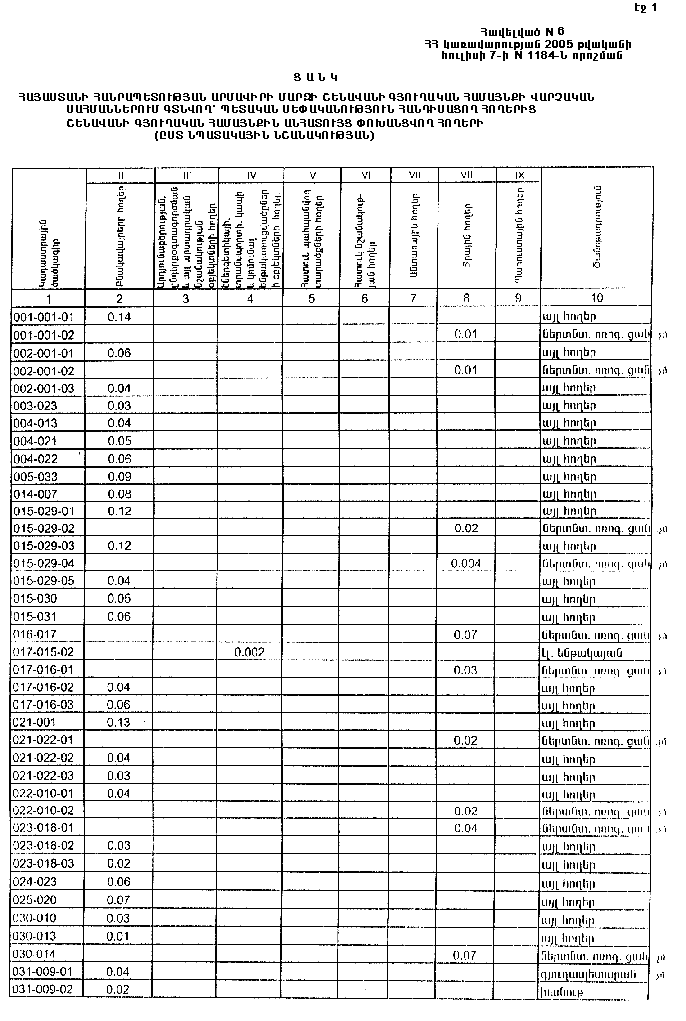 7 հուլիսի 2005 թվականի N 1184-Ն