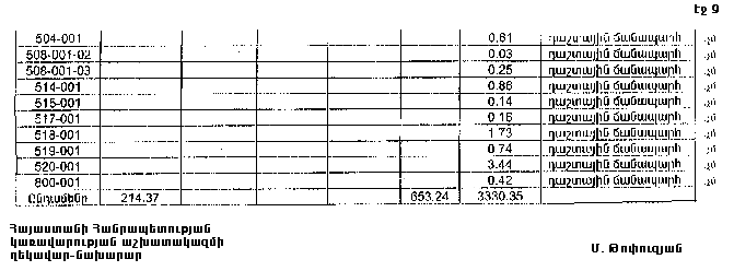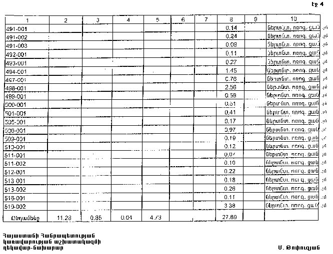 4. Ընդունել ի գիտություն Հայաստանի Հանրապետության Վայոց ձորի մարզի Մարտիրոսի գյուղական համայնքի հողային ֆոնդի առկայության և բաշխման մասին հաշվետվությունը՝ 2005 թվականի հունվարի 1-ի դրությամբ՝ համաձայն NN 8 և 9 հավելվածների: