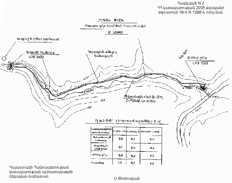 1. Հայաստանի Հանրապետության կառավարության 2005 թվականի մարտի 31-ի N 402-Ն որոշմամբ հաստատված` Հայաստանի Հանրապետության Տավուշի մարզի համայնքների վարչական սահմաններից դուրս` մարզի վարչական սահմաններում գտնվող հողերի օգտագործման ժամանակավոր սխեմայում` համաձայն NN 1 և 2 հավելվածների, հատուկ պահպանվող տարածքների հողերից 1.6 հեկտարը փոխադրել էներգետիկայի, կապի, տրանսպորտի և կոմունալ ենթակառուցվածքների օբյեկտների հողերի կատեգորիա` հիդրոէլեկտրակայանի ու օժանդակ կառույցների շինարարության համար: