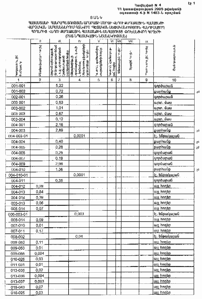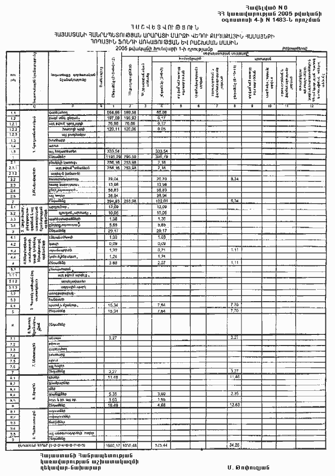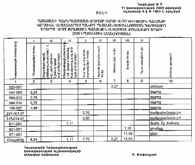4 օգոստոսի 2005 թվականի N 1483-Ն