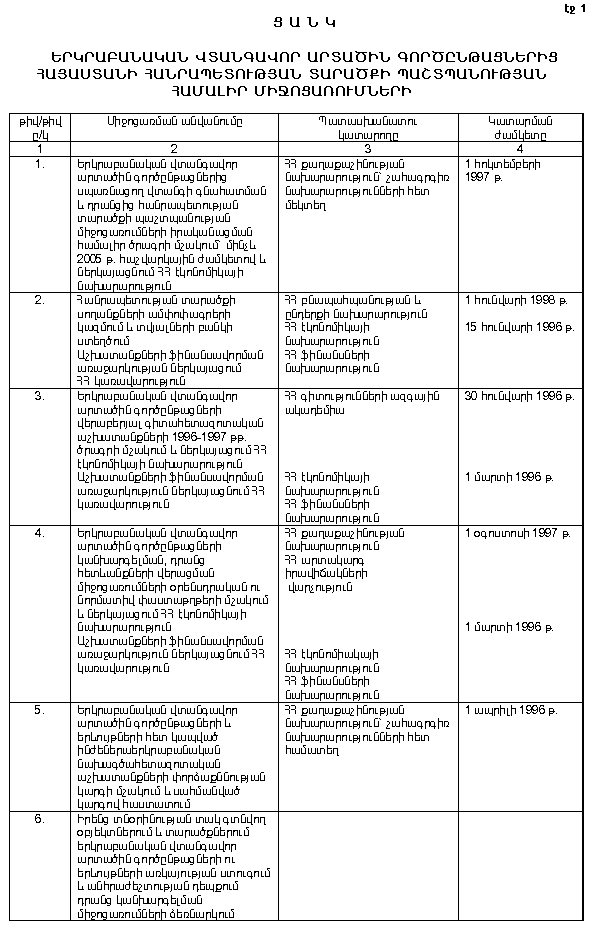 ԵՐԿՐԱԲԱՆԱԿԱՆ ՎՏԱՆԳԱՎՈՐ ԱՐՏԱԾԻՆ ԳՈՐԾԸՆԹԱՑՆԵՐԻՑ ՀԱՅԱՍՏԱՆԻ ՀԱՆՐԱՊԵՏՈՒԹՅԱՆ ՏԱՐԱԾՔԻ ՊԱՇՏՊԱՆՈՒԹՅԱՆ ՄԻՋՈՑԱՌՈՒՄՆԵՐԻ ՄԱՍԻՆ