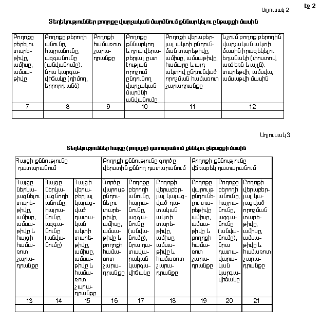 25. Հ.2 աղյուսակում պետք է լինի հ.1 աղյուսակի շարունակությունը և բովանդակի հետևյալ տեղեկությունները՝