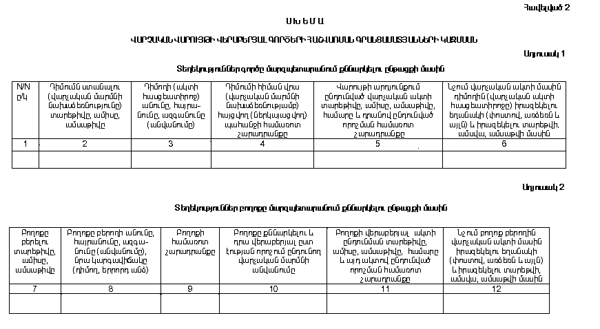 26. N 2 աղյուսակը լրացվում է միայն այն դեպքում, երբ տվյալ գործով բողոք է բերվել, և այն, օրենքին համապատասխան, քննարկվել և դրա վերաբերյալ ըստ էության որոշում է ընդունվել: