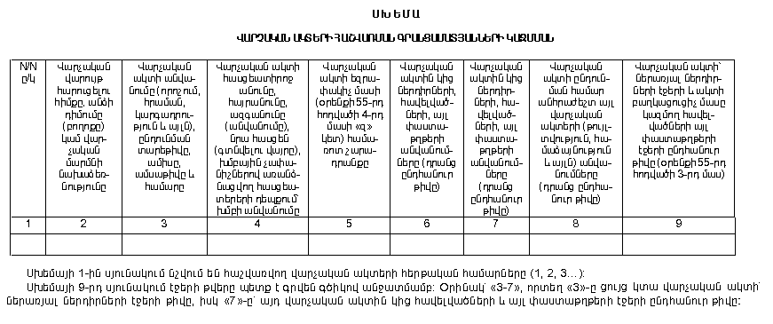 ՎԱՐՉԱԿԱՆ ԱԿՏԵՐԻ ՀԱՇՎԱՌՄԱՆ ԳՐԱՆՑԱՄԱՏՅԱՆՆԵՐԻ ԿԱԶՄՄԱՆ