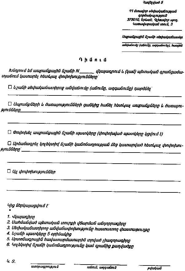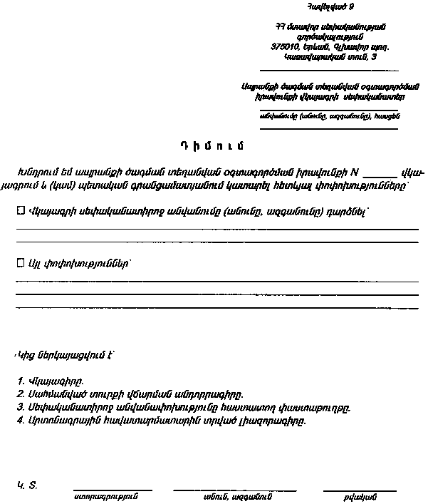 «Իրավատիրոջ ազգանունը, անունը (անվանումը) և (կամ) բնակության կամ գտնվելու վայրի հասցեն փոփոխվել է: