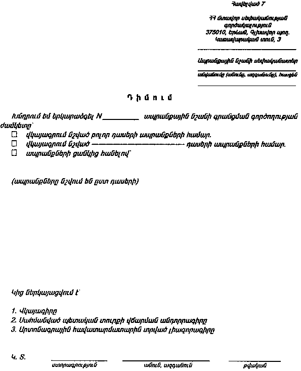 7) «Գրանցված է պետական գրանցամատյանում» բառերից հետո նշվում է փաստացի գրանցման թվականը: