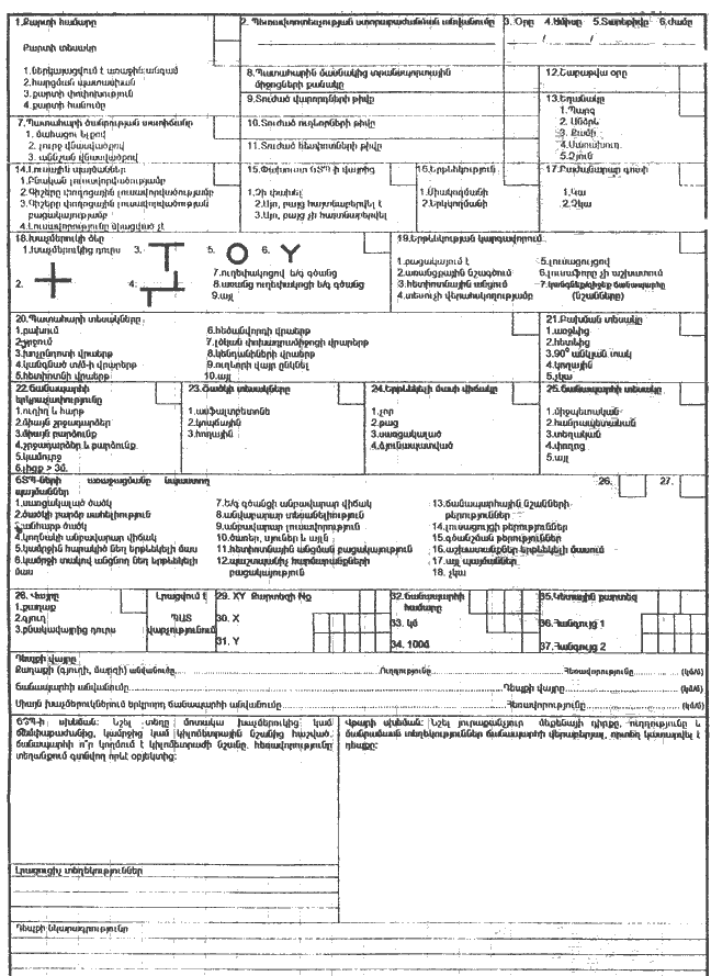 35. Մարմնական վնասվածքներով ՃՏՊ հաշվառման քարտի լրացումը իրականացվում է ներքոհիշյալ պահանջների հիման վրա.