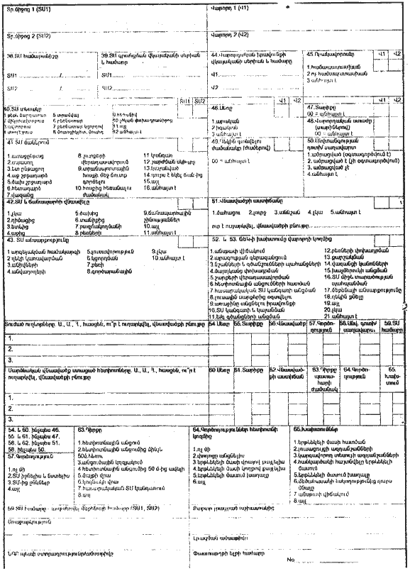 31. Մարմնական վնասվածքներով ՃՏՊ հաշվառման քարտը բաղկացած է համարակալված 65 բաժիններից և առանձին չհամարակալված մասերից:
