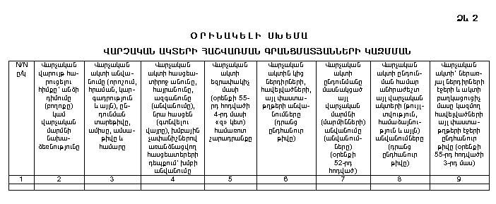 ՎԱՐՉԱԿԱՆ ՎԱՐՈՒՅԹԻ ՎԵՐԱԲԵՐՅԱԼ ՀԱՇՎԱՌՄԱՆ ԳՐԱՆՑԱՄԱՏՅԱՆՆԵՐԻ ԿԱԶՄՄԱՆ