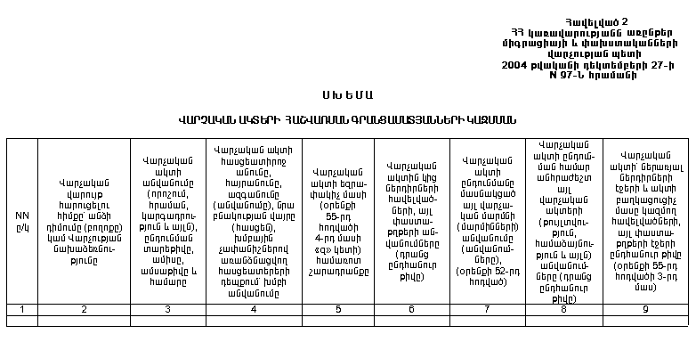 ՎԱՐՉԱԿԱՆ ԱԿՏԵՐԻ ՀԱՇՎԱՌՄԱՆ ԳՐԱՆՑԱՄԱՏՅԱՆՆԵՐԻ ԿԱԶՄՄԱՆ