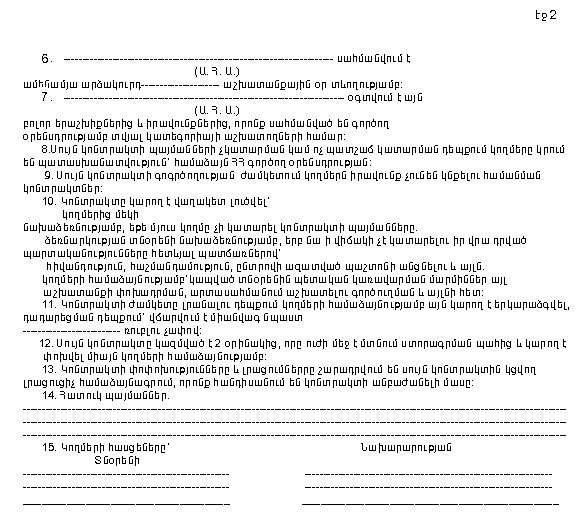 ՀԱՅԱՍՏԱՆԻ ՀԱՆՐԱՊԵՏՈՒԹՅՈՒՆՈՒՄ ԿՈՆՏՐԱԿՏԱՅԻՆ ԵՂԱՆԱԿՈՎ ԱՇԽԱՏԱՆՔԱՅԻՆ ՊԱՅՄԱՆԱԳՐԵՐԻ ԿՆՔՄԱՆ ԿԱՐԳԻ ԵՎ ԿԻՐԱՌՄԱՆ ՊԱՅՄԱՆՆԵՐԻ ՄԱՍԻՆ