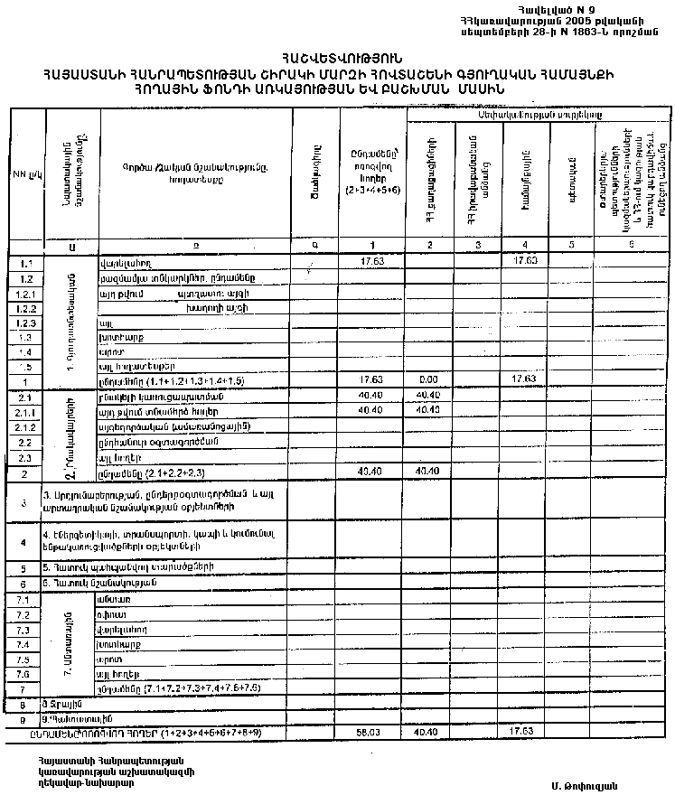 4. Ընդունել ի գիտություն Հայաստանի Հանրապետության Շիրակի մարզի Հովտաշենի գյուղական համայնքի հողային ֆոնդի առկայության և բաշխման մասին հաշվետվությունը` 2005 թվականի հունվարի 1-ի դրությամբ` համաձայն NN 8 և 9 հավելվածների: