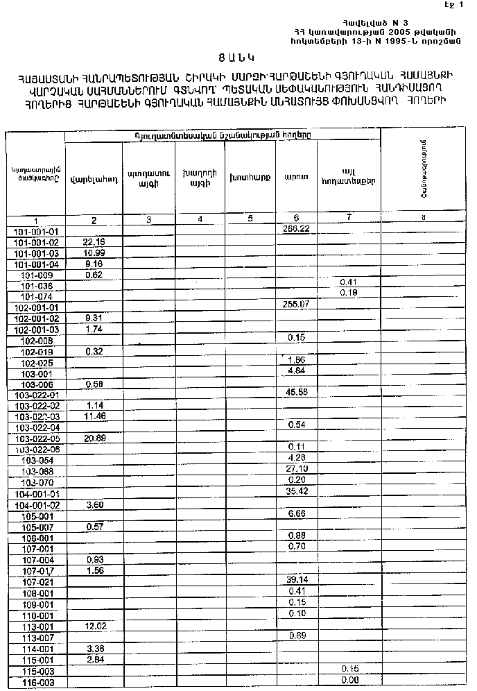 3. Ընդունել ի գիտություն Հայաստանի Հանրապետության Շիրակի մարզի Հարթաշենի գյուղական համայնքի հողային ֆոնդի առկայության և բաշխման մասին հաշվետվությունը՝ 2005 թվականի հունվարի 1-ի դրությամբ՝ համաձայն N 6 հավելվածի: