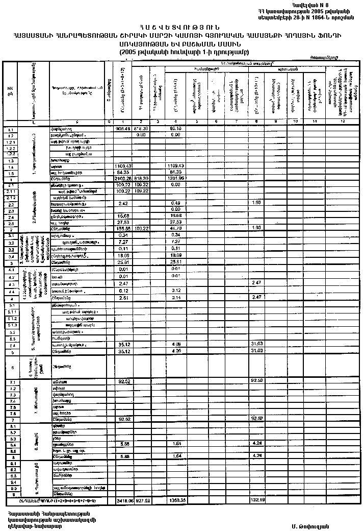 28 սեպտեմբերի 2005 թվականի N 1864-Ն