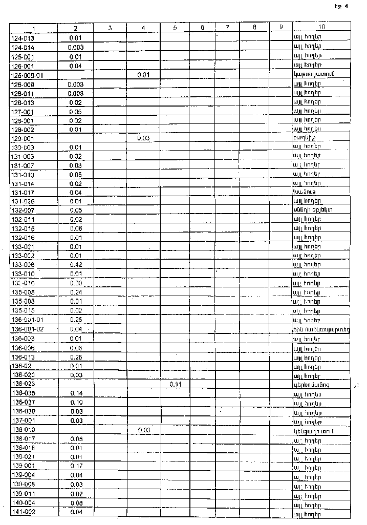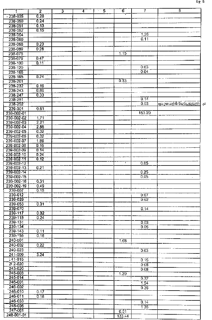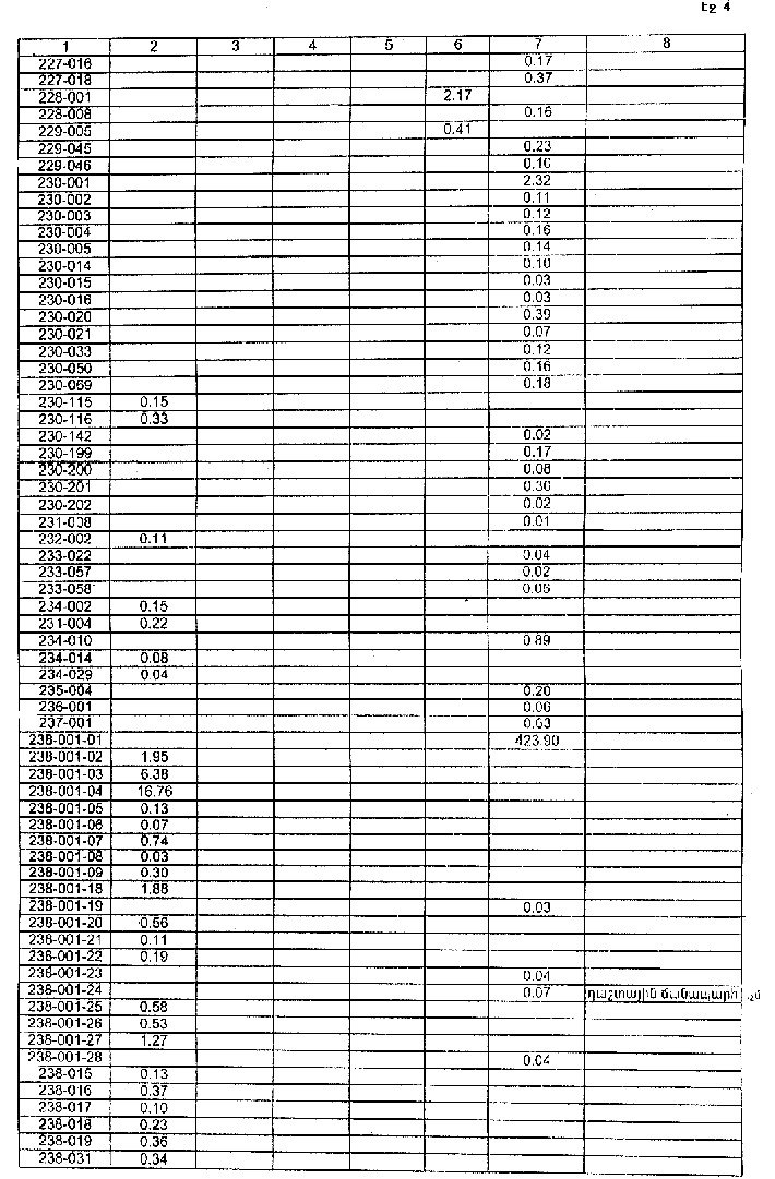 4. Ընդունել ի գիտություն Հայաստանի Հանրապետության Սյունիքի մարզի Դարբասի գյուղական համայնքի հողային ֆոնդի առկայության և բաշխման մասին հաշվետվությունը` 2005 թվականի հունվարի 1-ի դրությամբ` համաձայն NN 8 և 9 հավելվածների: