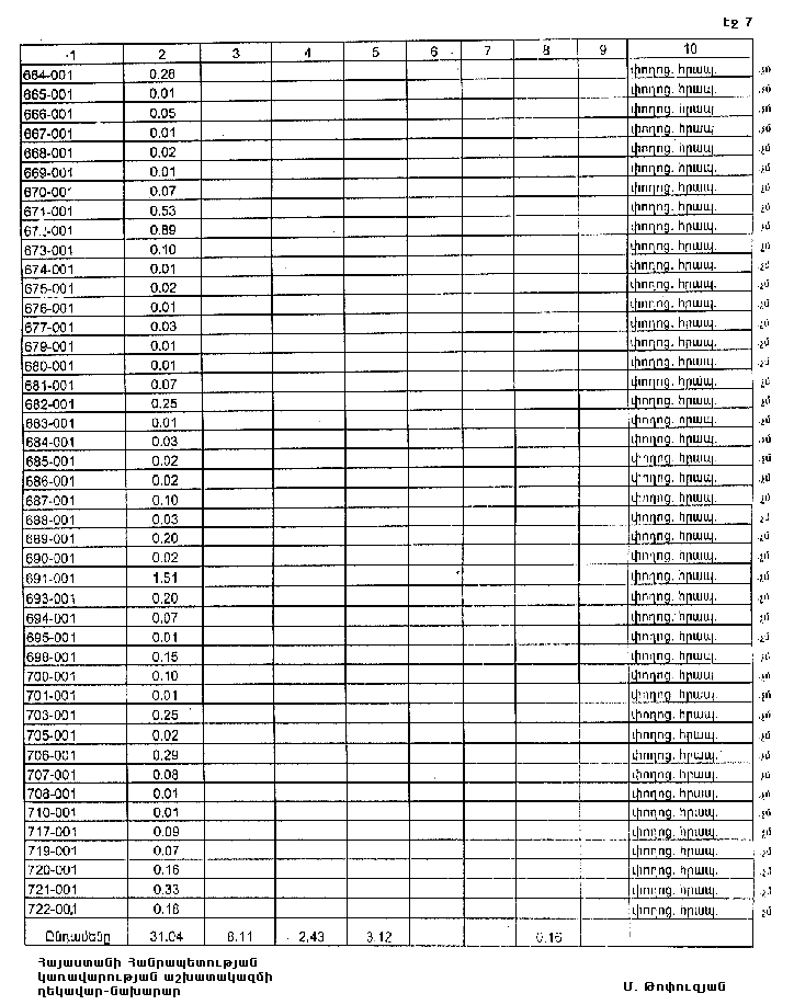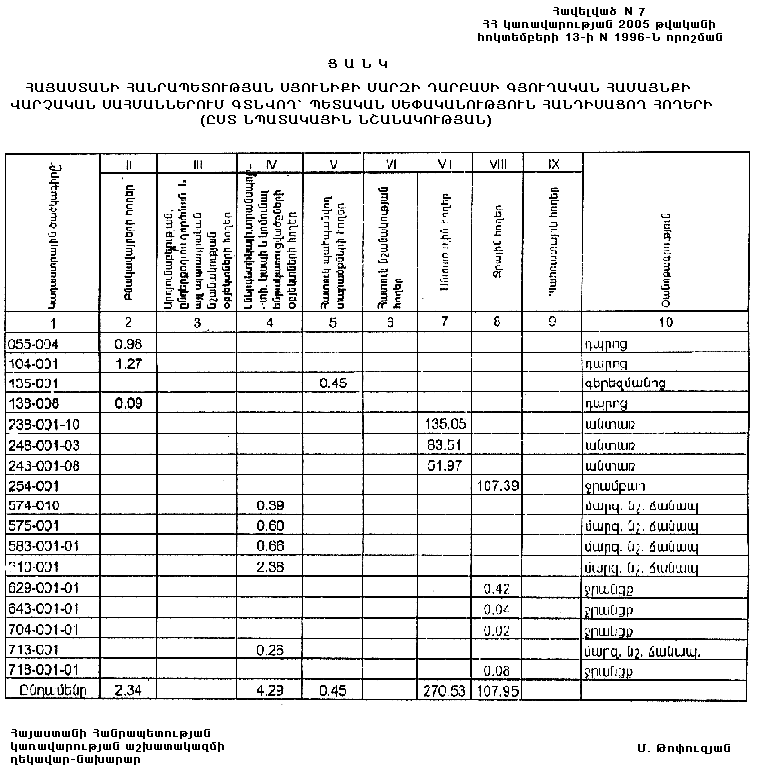 7. Հայաստանի Հանրապետության Սյունիքի մարզպետին` Հայաստանի Հանրապետության կառավարության 2000 թվականի հոկտեմբերի 23-ի N 656 որոշմամբ սահմանված կարգով` սկզբնական հաշվառման տվյալների հիման վրա ապահովել մարզի տարածքում ընթացիկ հաշվառման աշխատանքների իրականացումը: