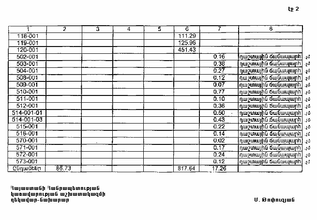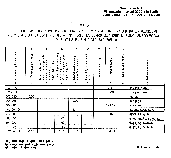 7. Հայաստանի Հանրապետության Տավուշի մարզպետին՝ Հայաստանի Հանրապետության կառավարության 2000 թվականի հոկտեմբերի 23-ի N 656 որոշմամբ սահմանված կարգով՝ սկզբնական հաշվառման տվյալների հիման վրա ապահովել մարզի տարածքում ընթացիկ հաշվառման աշխատանքների իրականացումը: