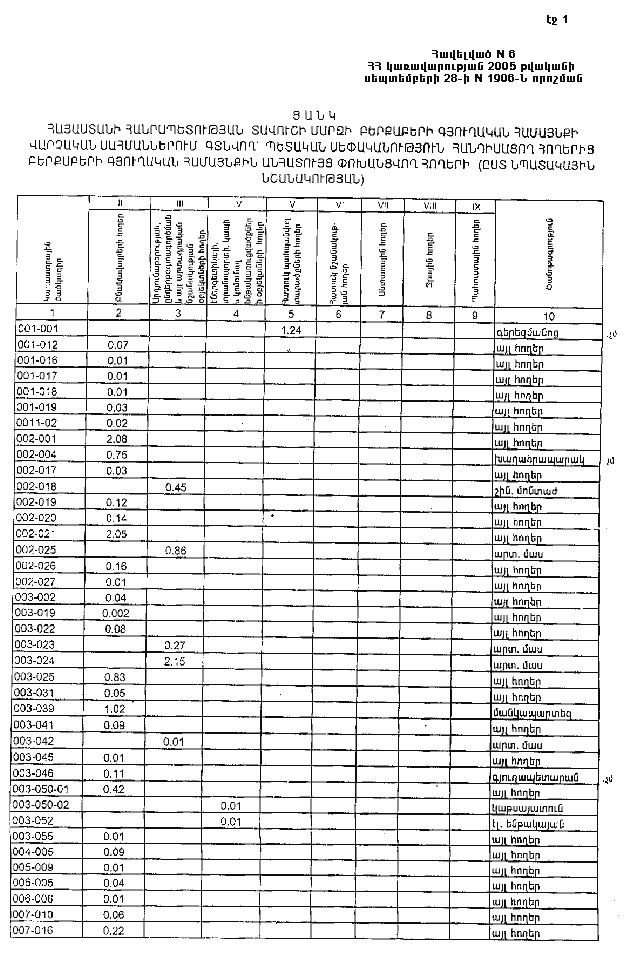 ՀԱՅԱՍՏԱՆԻ ՀԱՆՐԱՊԵՏՈՒԹՅԱՆ ՏԱՎՈՒՇԻ ՄԱՐԶԻ ԲԵՐՔԱԲԵՐԻ ԳՅՈՒՂԱԿԱՆ ՀԱՄԱՅՆՔԻ ՎԱՐՉԱԿԱՆ ՍԱՀՄԱՆՆԵՐՈՒՄ ԳՏՆՎՈՂ` ՊԵՏԱԿԱՆ ՍԵՓԱԿԱՆՈՒԹՅՈՒՆ ՀԱՆԴԻՍԱՑՈՂ ՀՈՂԵՐԻՑ ԲԵՐՔԱԲԵՐԻ ԳՅՈՒՂԱԿԱՆ ՀԱՄԱՅՆՔԻՆ ԱՆՀԱՏՈՒՅՑ ՓՈԽԱՆՑՎՈՂ ՀՈՂԵՐԻ (ԸՍՏ ՆՊԱՏԱԿԱՅԻՆ ՆՇԱՆԱԿՈՒԹՅԱՆ) | |
