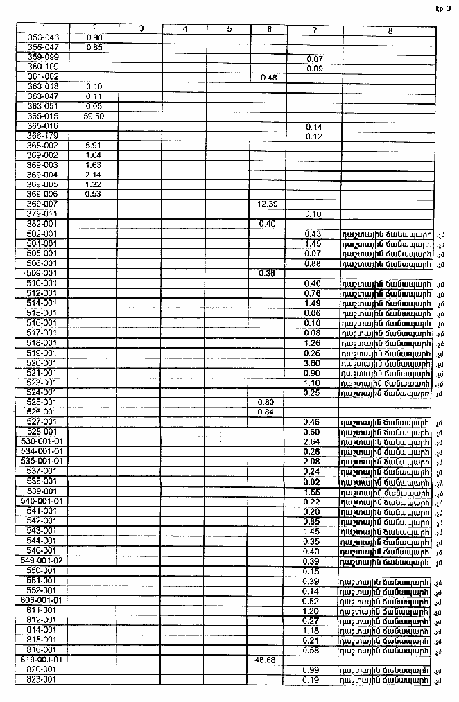 3. Ընդունել ի գիտություն Հայաստանի Հանրապետության Շիրակի մարզի Ախուրյանի գյուղական համայնքի հողային ֆոնդի առկայության և բաշխման մասին հաշվետվությունը՝ 2005 թվականի հունվարի 1-ի դրությամբ՝ համաձայն NN 6 և 7 հավելվածների: