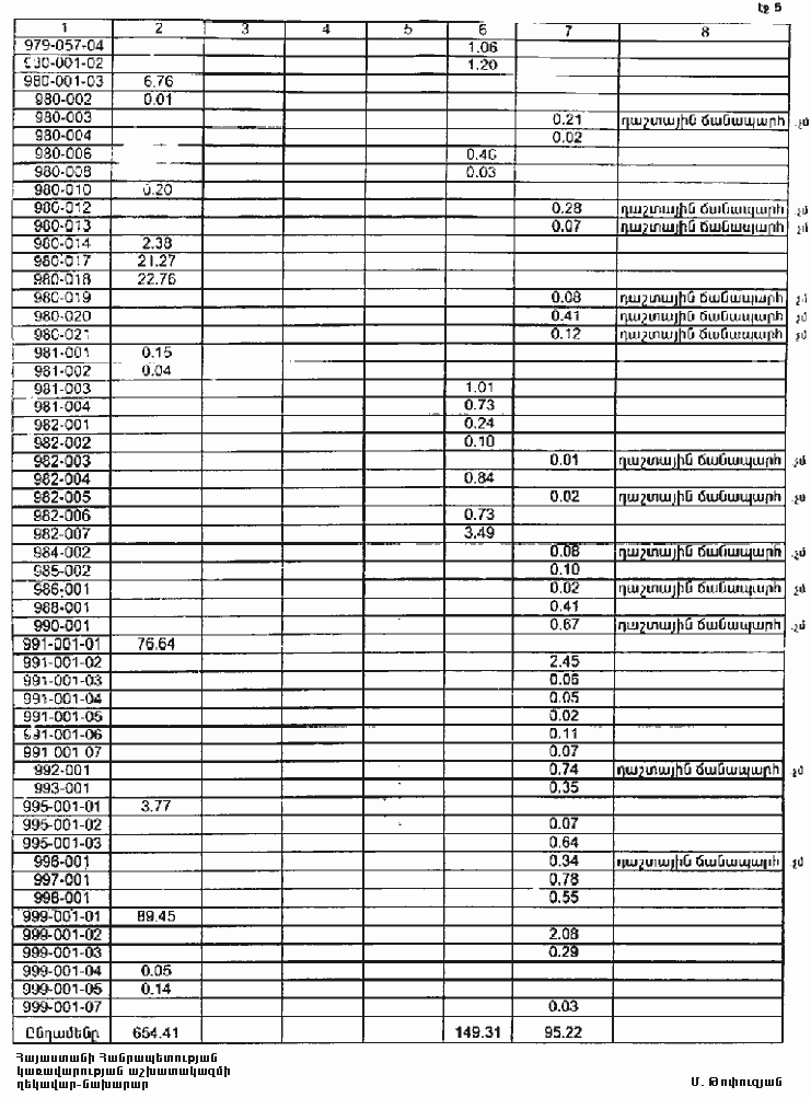 5. Թույլատրել Հայաստանի Հանրապետության կառավարությանն առընթեր անշարժ գույքի կադաստրի պետական կոմիտեին Հայաստանի Հանրապետության պետական գեոդեզիական ցանցի հավասարակշռման արդյունքների հիման վրա Հայաստանի Հանրապետության վարչատարածքային միավորների սահմանանիշերի կոորդինատների ժողովածուն հրատարակելուց հետո հողային ֆոնդի ընթացիկ հաշվառման ժամանակ Հայաստանի Հանրապետության Շիրակի մարզի Ախուրյանի գյուղական համայնքի հողային հաշվեկշռում սահմանված կարգով կատարել համապատասխան փոփոխություններ: