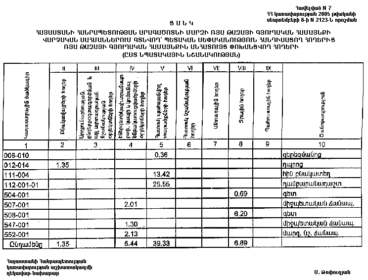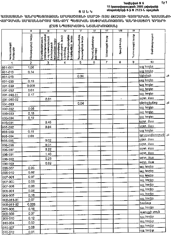 ՀԱՅԱՍՏԱՆԻ ՀԱՆՐԱՊԵՏՈՒԹՅԱՆ ԱՐԱԳԱԾՈՏՆԻ ՄԱՐԶԻ ՌՅԱ ԹԱԶԱՅԻ ԳՅՈՒՂԱԿԱՆ ՀԱՄԱՅՆՔԻ ՎԱՐՉԱԿԱՆ ՍԱՀՄԱՆՆԵՐՈՒՄ ԳՏՆՎՈՂ` ՊԵՏԱԿԱՆ ՍԵՓԱԿԱՆՈՒԹՅՈՒՆ ՀԱՆԴԻՍԱՑՈՂ ՀՈՂԵՐԻՑ ՌՅԱ ԹԱԶԱՅԻ ԳՅՈՒՂԱԿԱՆ ՀԱՄԱՅՆՔԻՆ ԱՆՀԱՏՈՒՅՑ ՓՈԽԱՆՑՎՈՂ ՀՈՂԵՐԻ