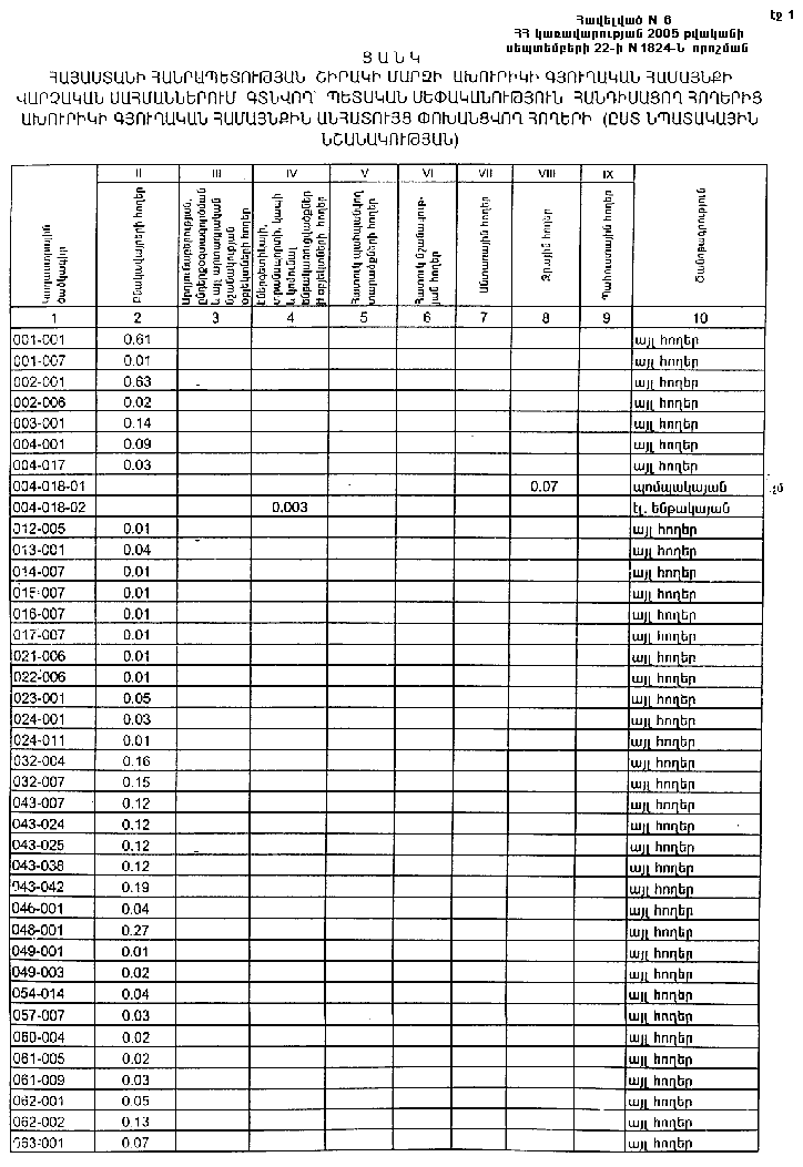 ՀԱՅԱՍՏԱՆԻ ՀԱՆՐԱՊԵՏՈՒԹՅԱՆ ՇԻՐԱԿԻ ՄԱՐԶԻ ԱԽՈՒՐԻԿԻ ԳՅՈՒՂԱԿԱՆ ՀԱՄԱՅՆՔԻ ՎԱՐՉԱԿԱՆ ՍԱՀՄԱՆՆԵՐՈՒՄ ԳՏՆՎՈՂ` ՊԵՏԱԿԱՆ ՍԵՓԱԿԱՆՈՒԹՅՈՒՆ ՀԱՆԴԻՍԱՑՈՂ ՀՈՂԵՐԻՑ ԱԽՈՒՐԻԿԻ ԳՅՈՒՂԱԿԱՆ ՀԱՄԱՅՆՔԻՆ ԱՆՀԱՏՈՒՅՑ ՓՈԽԱՆՑՎՈՂ ՀՈՂԵՐԻ (ԸՍՏ ՆՊԱՏԱԿԱՅԻՆ ՆՇԱՆԱԿՈՒԹՅԱՆ)