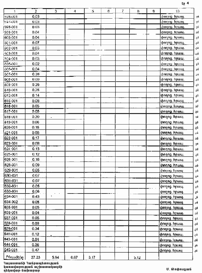 4. Ընդունել ի գիտություն Հայաստանի Հանրապետության Շիրակի մարզի Ախուրիկի գյուղական համայնքի հողային ֆոնդի առկայության և բաշխման մասին հաշվետվությունը` 2005 թվականի հունվարի 1-ի դրությամբ` համաձայն NN 8 և 9 հավելվածների: