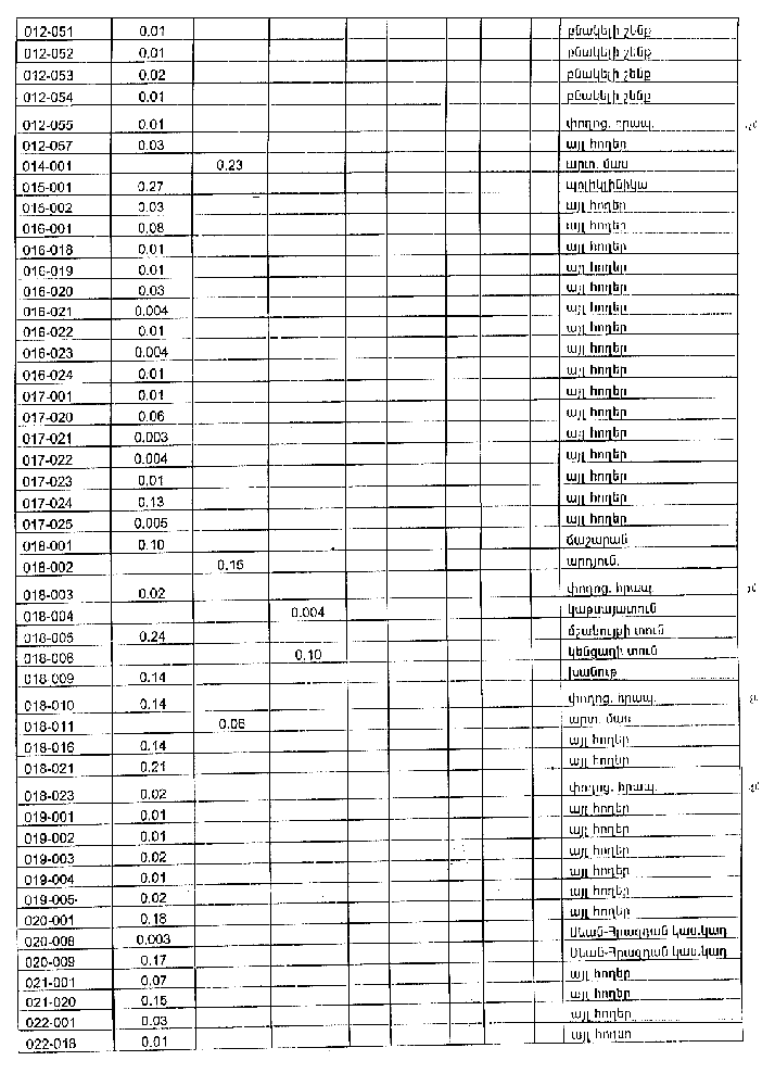 Հայաստանի Հանրապետության հողային օրենսգրքի 34-րդ ու 56-րդ, «Տեղական ինքնակառավարման մասին» Հայաստանի Հանրապետության օրենքի 6-րդ, 47-րդ ու 84-րդ և «Հայաստանի Հանրապետության վարչատարածքային բաժանման մասին» Հայաստանի Հանրապետության օրենքի 6-րդ հոդվածների պահանջներին համապատասխան` Հայաստանի Հանրապետության կառավարությունը որոշում է. 1. Հաստատել Հայաստանի Հանրապետության Կոտայքի մարզի Արգելի գյուղական համայնքի վարչական սահմանների նկարագիրը` համաձայն NN 1 և 2 հավելվածների: 2. Հայաստանի Հանրապետության Կոտայքի մարզի Արգելի գյուղական համայնքի վարչական սահմաններում գտնվող` պետական սեփականություն հանդիսացող 269.48 հեկտար հողամասերից 235.47 հեկտարը, որից` գյուղատնտեսական նշանակության 130.85 հեկտար, բնակավայրերի հողերի` 81.33 հեկտար, արդյունաբերության, ընդերքօգտագործման և այլ արտադրական նշանակության օբյեկտների` 9.17 հեկտար, էներգետիկայի, տրանսպորտի, կապի և կոմունալ ենթակառուցվածքների օբյեկտների` 6.2 հեկտար, հատուկ պահպանվող տարածքների` 7.93 հեկտար, անհատույց սեփականության իրավունքով փոխանցել Արգելի գյուղական համայնքին` համաձայն NN 3, 4, 5 և 6 հավելվածների: 3. Սահմանել, որ Հայաստանի Հանրապետության հողային օրենսգրքի 60-րդ հոդվածի պահանջներին համապատասխան` ա) Հայաստանի Հանրապետության Կոտայքի մարզի Արգելի գյուղական համայնքին անհատույց սեփականության իրավունքով փոխանցվող 235.47 հեկտար հողերից 48.0 հեկտարը մասնավորեցման ենթակա չէ. բ) Հայաստանի Հանրապետության Կոտայքի մարզի Արգելի գյուղական համայնքի վարչական սահմաններում գտնվող հողերից 34.01 հեկտարը համարվում է պետական սեփականություն` համաձայն N 7 հավելվածի: 4. Ընդունել ի գիտություն Հայաստանի Հանրապետության Կոտայքի մարզի Արգելի գյուղական համայնքի հողային ֆոնդի առկայության և բաշխման մասին հաշվետվությունը` 2005 թվականի հունվարի 1-ի դրությամբ` համաձայն NN 8 և 9 հավելվածների: 5. Հայաստանի Հանրապետության կառավարությանն առընթեր անշարժ գույքի կադաստրի պետական կոմիտեի նախագահին` սահմանված կարգով ապահովել սկզբնական հաշվառման նյութերի տրամադրումը Հայաստանի Հանրապետության Կոտայքի մարզի Արգելի գյուղական համայնքի ղեկավարին` հողերի ընթացիկ հաշվառումն անցկացնելու և համայնքի հողային հաշվեկշիռը կազմելու համար: 6. Թույլատրել Հայաստանի Հանրապետության կառավարությանն առընթեր անշարժ գույքի կադաստրի պետական կոմիտեի նախագահին Հայաստանի Հանրապետության պետական գեոդեզիական ցանցի հավասարակշռման արդյունքների հիման վրա Հայաստանի Հանրապետության վարչատարածքային միավորների սահմանանիշերի կոորդինատների ժողովածուի հրատարակումից հետո հողային ֆոնդի ընթացիկ հաշվառման ժամանակ Հայաստանի Հանրապետության Կոտայքի մարզի Արգելի գյուղական համայնքի հողային հաշվեկշռում սահմանված կարգով կատարել համապատասխան փոփոխություններ: 7. Հայաստանի Հանրապետության Կոտայքի մարզպետին` Հայաստանի Հանրապետության կառավարության 2000 թվականի հոկտեմբերի 23-ի N 656 որոշմամբ սահմանված կարգով` սկզբնական հաշվառման տվյալների հիման վրա ապահովել մարզի տարածքում ընթացիկ հաշվառման աշխատանքների իրականացումը: 8. Սույն որոշումն ուժի մեջ է մտնում պաշտոնական հրապարակմանը հաջորդող օրվանից։ |
