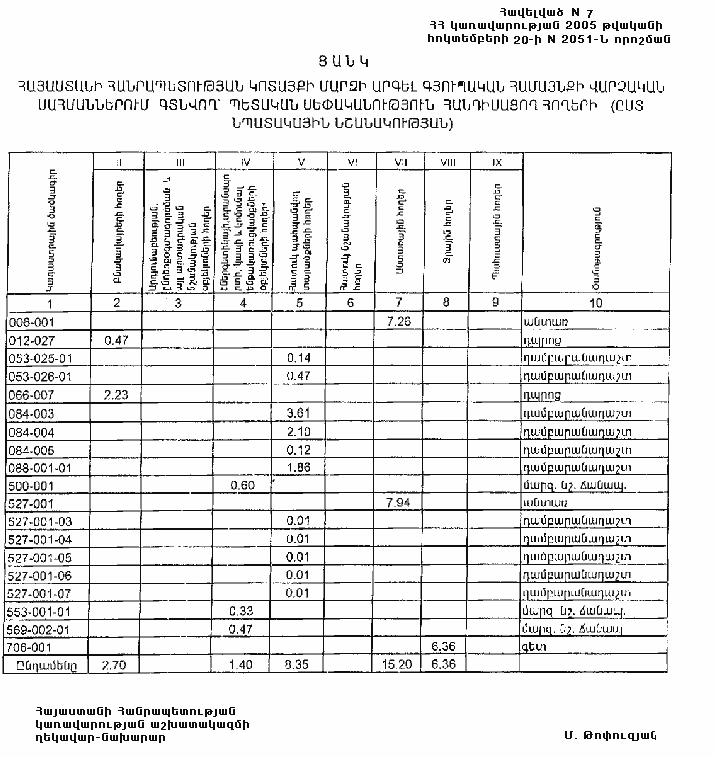 20 հոկտեմբերի 2005 թվականի N 2051-Ն