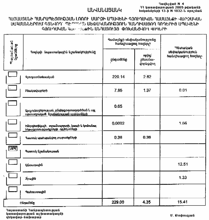 ա) Հայաստանի Հանրապետության Լոռու մարզի Ապավենի գյուղական համայնքին անհատույց սեփականության իրավունքով փոխանցվող 229.0 հեկտար հողերից 4.35 հեկտարը մասնավորեցման ենթակա չէ.