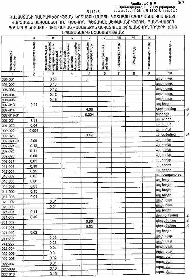 ՀԱՅԱՍՏԱՆԻ ՀԱՆՐԱՊԵՏՈՒԹՅԱՆ ԿՈՏԱՅՔԻ ՄԱՐԶԻ ԿՈՏԱՅՔԻ ԳՅՈՒՂԱԿԱՆ ՀԱՄԱՅՆՔԻ ՎԱՐՉԱԿԱՆ ՍԱՀՄԱՆՆԵՐՈՒՄ ԳՏՆՎՈՂ` ՊԵՏԱԿԱՆ ՍԵՓԱԿԱՆՈՒԹՅՈՒՆ ՀԱՆԴԻՍԱՑՈՂ ՀՈՂԵՐԻՑ ԿՈՏԱՅՔԻ ԳՅՈՒՂԱԿԱՆ ՀԱՄԱՅՆՔԻՆ ԱՆՀԱՏՈՒՅՑ ՓՈԽԱՆՑՎՈՂ ՀՈՂԵՐԻ