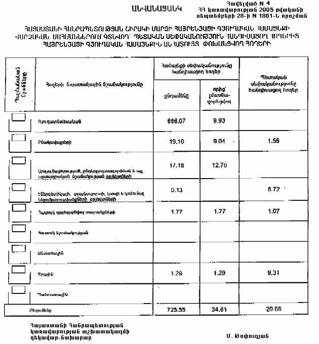 4. Ընդունել ի գիտություն Հայաստանի Հանրապետության Շիրակի մարզի Հայրենյացի գյուղական համայնքի հողային ֆոնդի առկայության և բաշխման մասին հաշվետվությունը` 2005 թվականի հունվարի 1-ի դրությամբ` համաձայն N 8 հավելվածի:
