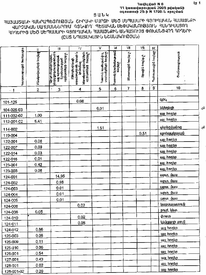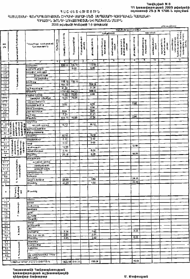 25 օգոստոսի 2005 թվականի N 1706-Ն