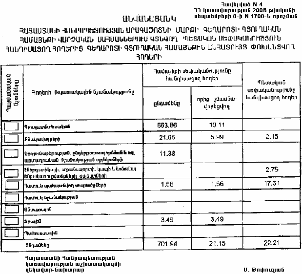8 սեպտեմբերի 2005 թվականի N 1708-Ն