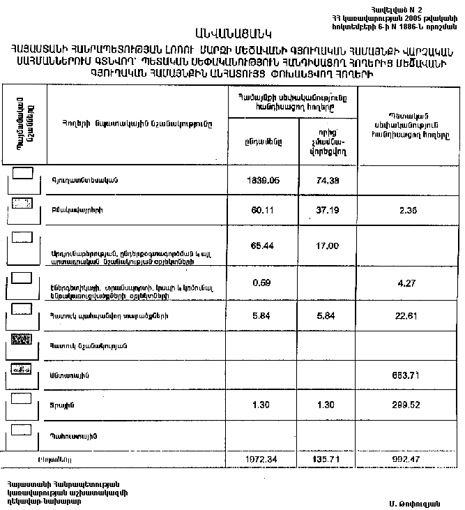 ա) Հայաստանի Հանրապետության Լոռու մարզի Մեծավանի գյուղական համայնքին անհատույց սեփականության իրավունքով փոխանցվող 1972.34 հեկտար հողերից 135.71 հեկտարը մասնավորեցման ենթակա չէ.