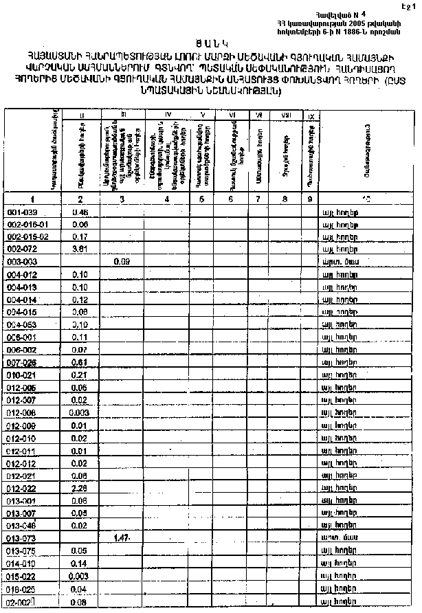 6 հոկտեմբերի 2005 թվականի N 1886-Ն