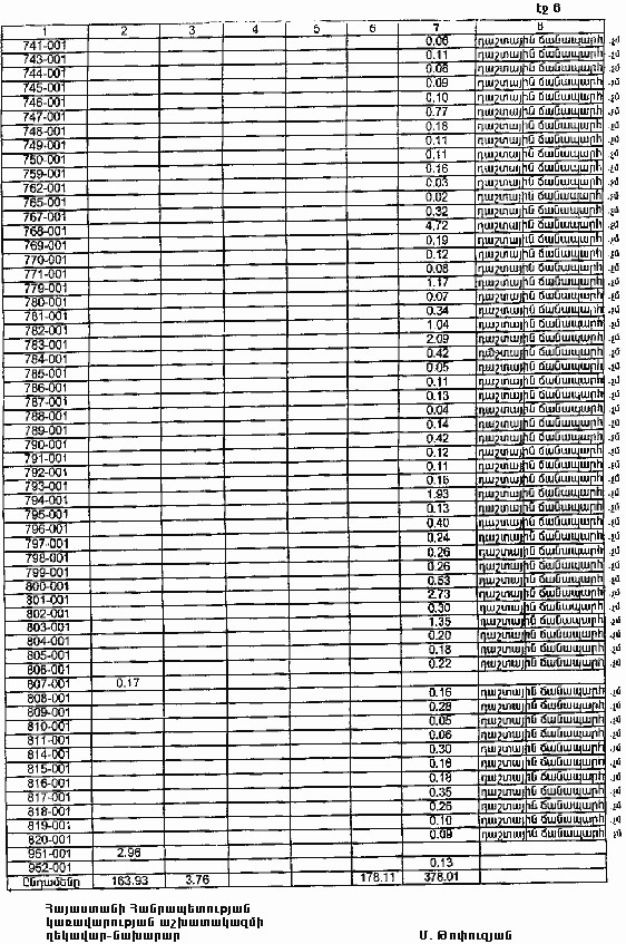 6. Թույլատրել Հայաստանի Հանրապետության կառավարությանն առընթեր անշարժ գույքի կադաստրի պետական կոմիտեի նախագահին Հայաստանի Հանրապետության պետական գեոդեզիական ցանցի հավասարակշռման արդյունքների հիման վրա Հայաստանի Հանրապետության վարչատարածքային միավորների սահմանանիշերի կոորդինատների ժողովածուի հրատարակումից հետո հողային ֆոնդի ընթացիկ հաշվառման ժամանակ Հայաստանի Հանրապետության Արարատի մարզի Փոքր Վեդու գյուղական համայնքի հողային հաշվեկշռում սահմանված կարգով կատարել համապատասխան փոփոխություններ: