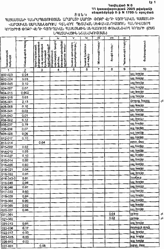4. Ընդունել ի գիտություն Հայաստանի Հանրապետության Արարատի մարզի Փոքր Վեդու գյուղական համայնքի հողային ֆոնդի առկայության և բաշխման մասին հաշվետվությունը` 2005 թվականի հունվարի 1-ի դրությամբ` համաձայն NN 8 և 9 հավելվածների: