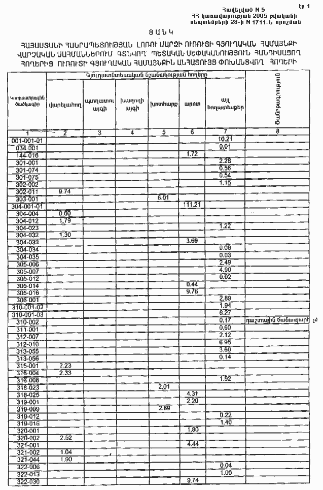 4. Ընդունել ի գիտություն Հայաստանի Հանրապետության Լոռու մարզի Ուռուտի գյուղական համայնքի հողային ֆոնդի առկայության և բաշխման մասին հաշվետվությունը` 2005 թվականի հունվարի 1-ի դրությամբ` համաձայն N 8 հավելվածի: