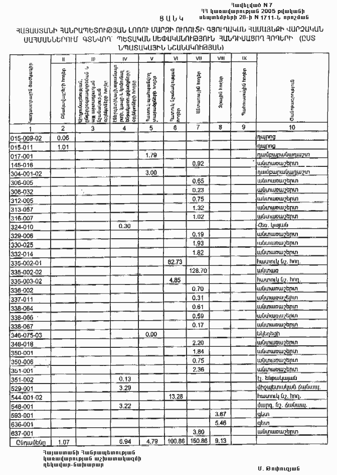 7. Հայաստանի Հանրապետության Լոռու մարզպետին` Հայաստանի Հանրապետության կառավարության 2000 թվականի հոկտեմբերի 23-ի N 656 որոշմամբ սահմանված կարգով` սկզբնական հաշվառման տվյալների հիման վրա ապահովել մարզի տարածքում ընթացիկ հաշվառման աշխատանքների իրականացումը: