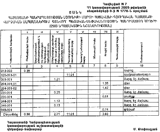 7. Հայաստանի Հանրապետության Սյունիքի մարզպետին` Հայաստանի Հանրապետության կառավարության 2000 թվականի հոկտեմբերի 23-ի N 656 որոշմամբ սահմանված կարգով` սկզբնական հաշվառման տվյալների հիման վրա ապահովել մարզի տարածքում ընթացիկ հաշվառման աշխատանքների իրականացումը: