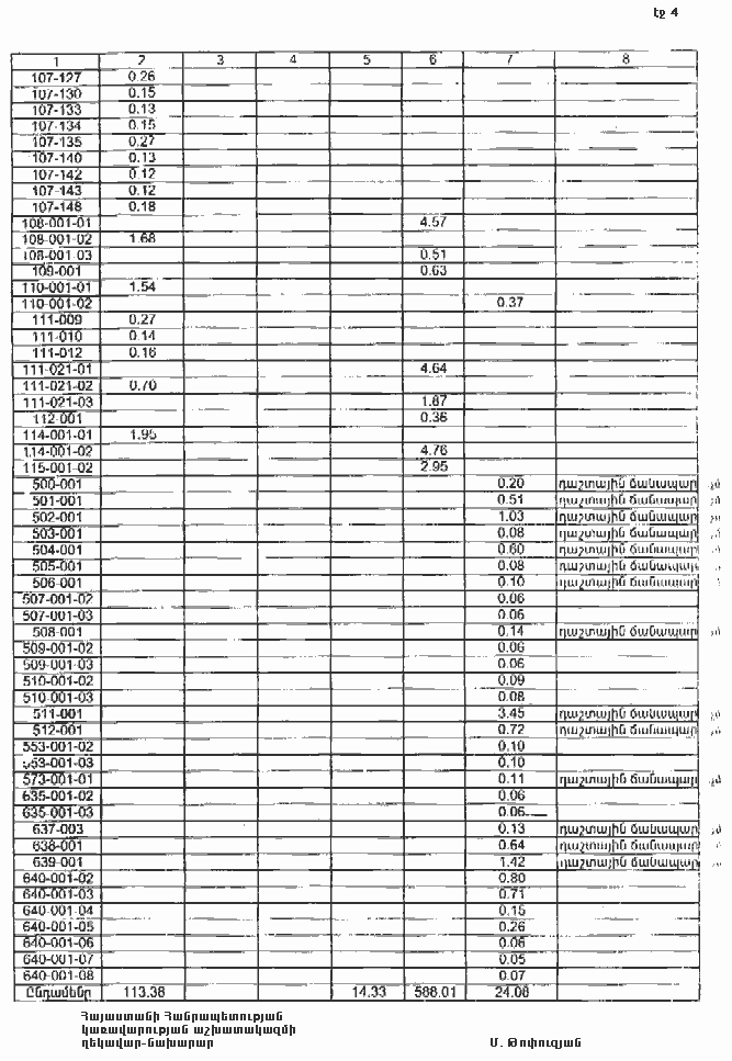4. Ընդունել ի գիտություն Հայաստանի Հանրապետության Գեղարքունիքի մարզի Դպրաբակի գյուղական համայնքի հողային ֆոնդի առկայության և բաշխման մասին հաշվետվությունը՝ 2005 թվականի հունվարի 1-ի դրությամբ՝ համաձայն NN 8 և 9 հավելվածների: