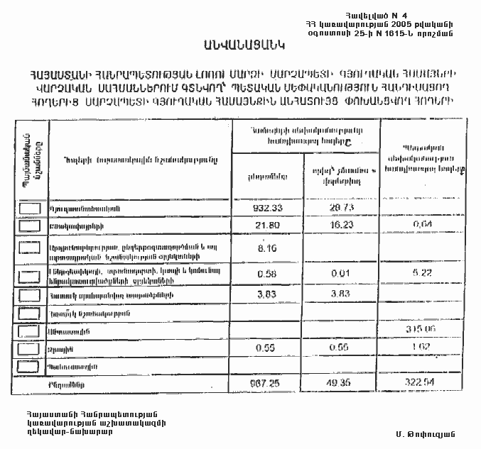 25 օգոստոսի 2005 թվականի N 1615-Ն