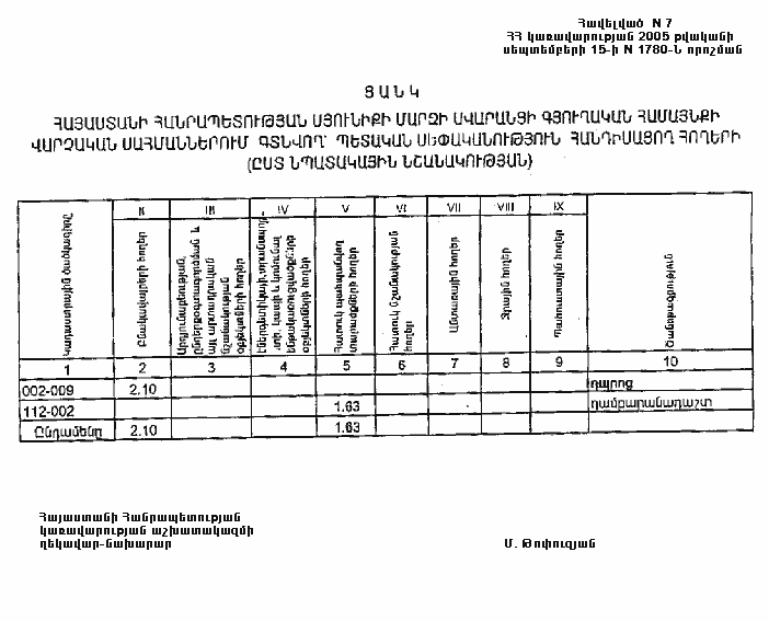 15 սեպտեմբերի 2005 թվականի N 1780-Ն