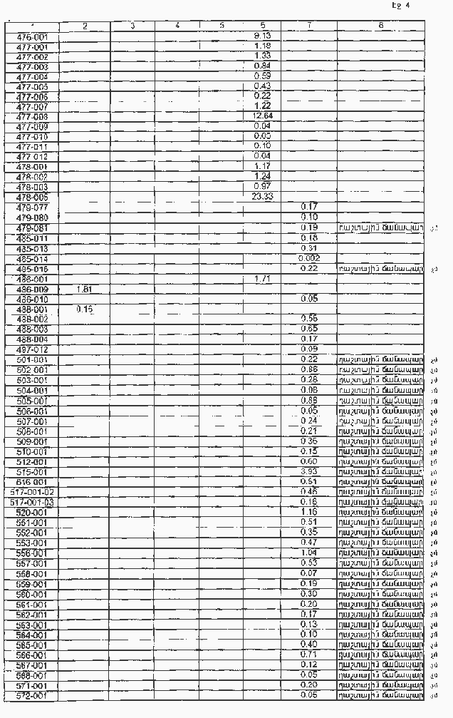 4. Ընդունել ի գիտություն Հայաստանի Հանրապետության Արմավիրի մարզի Մրգաշատի գյուղական համայնքի հողային ֆոնդի առկայության և բաշխման մասին հաշվետվությունը՝ 2005 թվականի հունվարի 1-ի դրությամբ՝ համաձայն NN 8 և 9 հավելվածների: