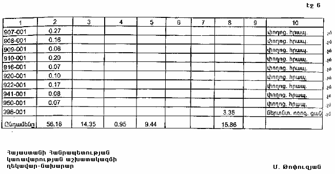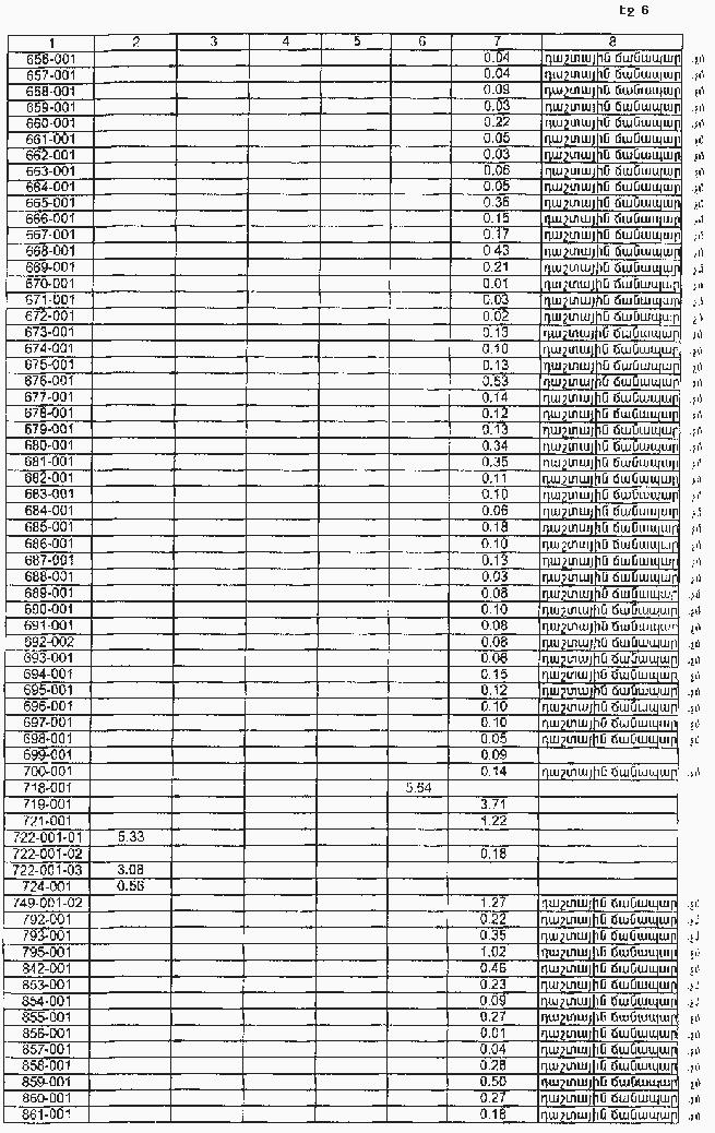 6. Թույլատրել Հայաստանի Հանրապետության կառավարությանն առընթեր անշարժ գույքի կադաստրի պետական կոմիտեի նախագահին Հայաստանի Հանրապետության պետական գեոդեզիական ցանցի հավասարակշռման արդյունքների հիման վրա Հայաստանի Հանրապետության վարչատարածքային միավորների սահմանանիշերի կոորդինատների ժողովածուի հրատարակումից հետո հողային ֆոնդի ընթացիկ հաշվառման ժամանակ Հայաստանի Հանրապետության Արմավիրի մարզի Մրգաշատի գյուղական համայնքի հողային հաշվեկշռում սահմանված կարգով կատարել համապատասխան փոփոխություններ: