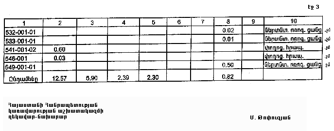 Հայաստանի Հանրապետության Մ. Թոփուզյան Հավելված N 9